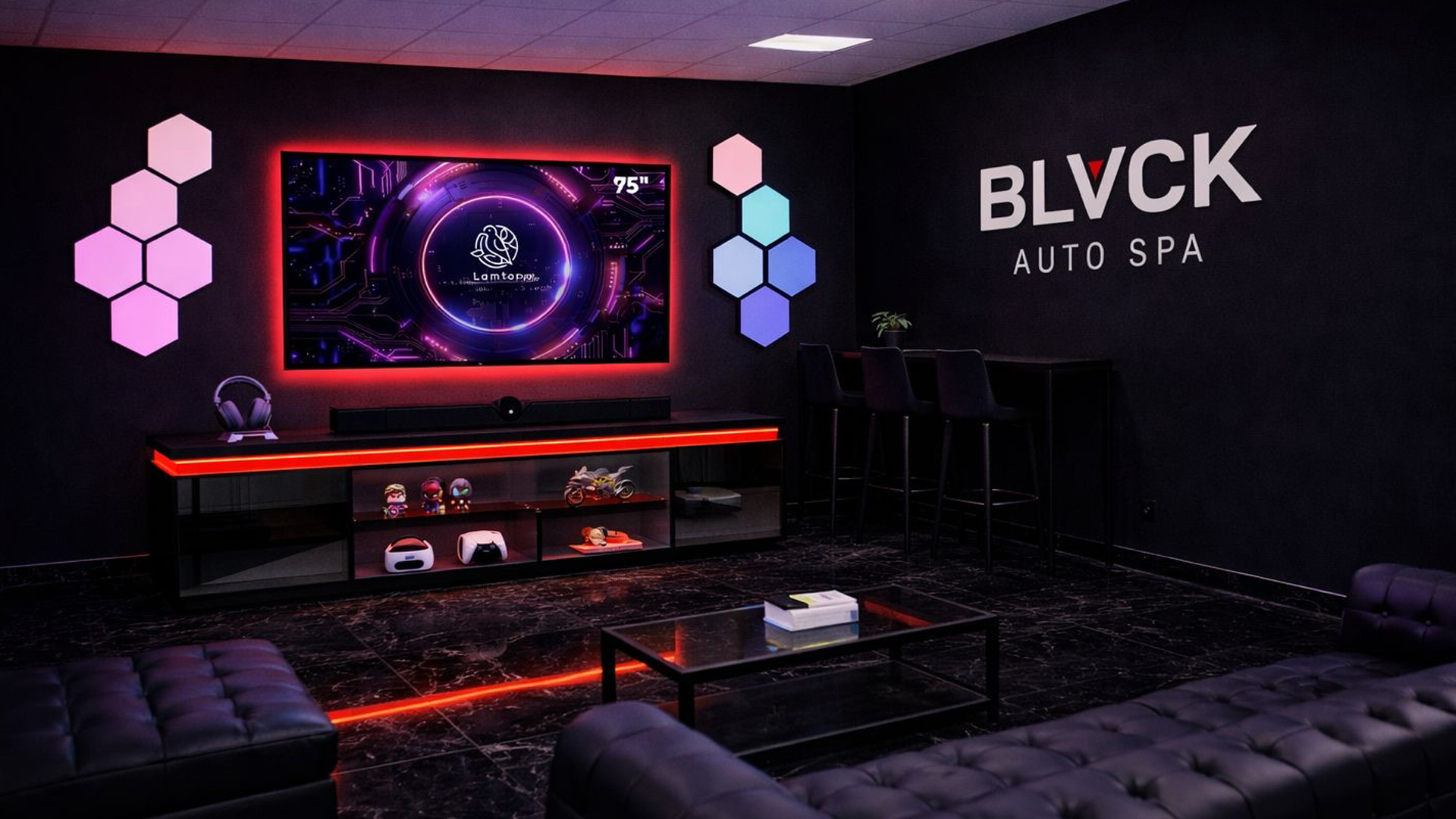 Take a break and enjoy our entertainment lounge, designed for pure downtime. Watch your favorite shows on a large-screen TV or jump into a PlayStation session, whether you’re relaxing solo or spending time with friends, while we take care of your vehicle.